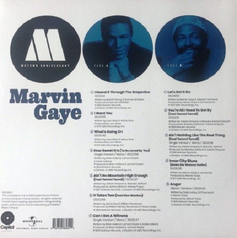 Artista(s) / Grupo: Marvin Gaye | Cantidad de Discos: 1 LP | Lanzamiento: 2019 | Género(s): Soul | Estilo(s): Soul, Funk, Contemporary R&B | Título: Motown Anniversary | Artista(s) / Grupo: Marvin Gaye | Cantidad de Discos: 1 LP | Lanzamiento: 2019 | Género(s): Soul | Estilo(s): Soul, Funk, Contemporary R&B | Título: Motown Anniversary