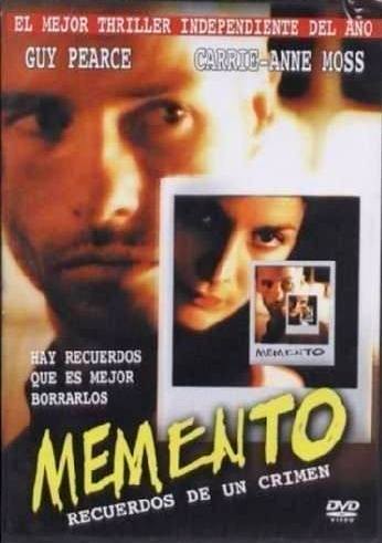 Cantidad de Discos: 1 | Lanzamiento: 2000 | Género(s): Intriga | Audio: Inglés | SubtÃtulos: Español | TÃtulo: Memento, recuerdos de un crimen | Director(es): Christopher Nolan | Reparto: Guy Pearce, Carrie-Anne Moss, Joe Pantoliano, Mark Boone Junior, Stephen Tobolowsky, Harriet Sansom Harris, Jorja Fox | Sub-CategorÃas: Drama | Norma / Región: NTSC (Región 1, 4)