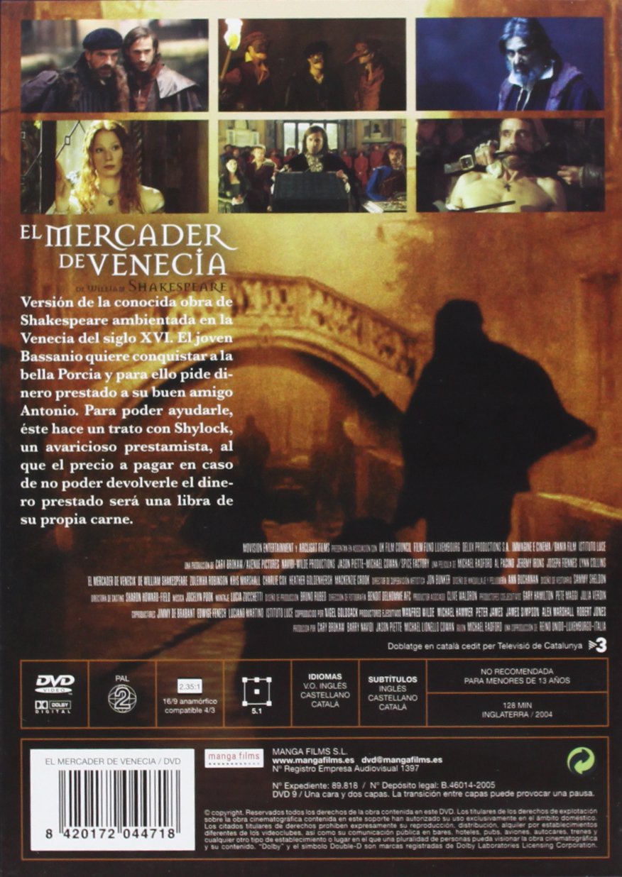 Adaptación del drama homónimo de William Shakespeare. Venecia, siglo XVI. Bassanio pide al mercader Antonio un préstamo de 3.000 ducados para poder conquistar a Portia, hija del acaudalado Belmont y heredera de su fortuna.