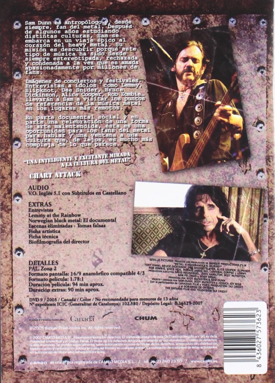 Cantidad de Discos: 1 | Lanzamiento: 2005 | Género(s): Documental | Audio: Inglés | SubtÃtulos: Español | TÃtulo: Metal: A Headbanger’s Journey | Director(es): Sam Dunn, Scot McFadyen, Jessica Joy Wise | Norma / Región: PAL (Región 2) | Cantidad de Discos: 1 | Lanzamiento: 2005 | Género(s): Documental | Audio: Inglés | SubtÃtulos: Español | TÃtulo: Metal: A Headbanger’s Journey | Director(es): Sam Dunn, Scot McFadyen, Jessica Joy Wise | Norma / Región: PAL (Región 2)
