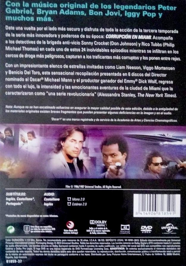 Ven a darte una vuelta por el lado más peligroso de la ciudad, con este fascinante pack de acción de corrupción en Miami, ahora por fin en dvd la temporada tres.Con 24 capítulos inolvidables, en los que los policías más famosos, Crocket y Tubbs, se implicarán en los círculos de la droga más peligrosos,parando a traficantes de droga y mentes criminales.