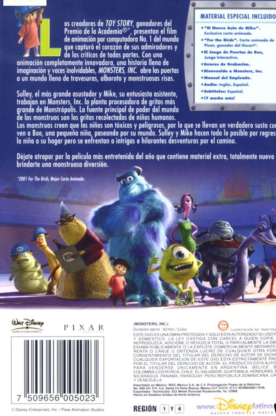 Cantidad de Discos: 1 | Lanzamiento: 2001 | Género(s): Animación | Audio: Inglés, Español | Subtítulos: Español | Título: Monsters inc. | Director(es): Pete Docter, Lee Unkrich, David Silverman | Sub-Categorías: Infantil | Norma / Región: NTSC (Región 1, 4) | Series: Disney | Cantidad de Discos: 1 | Lanzamiento: 2001 | Género(s): Animación | Audio: Inglés, Español | Subtítulos: Español | Título: Monsters inc. | Director(es): Pete Docter, Lee Unkrich, David Silverman | Sub-Categorías: Infantil | Norma / Región: NTSC (Región 1, 4) | Series: Disney