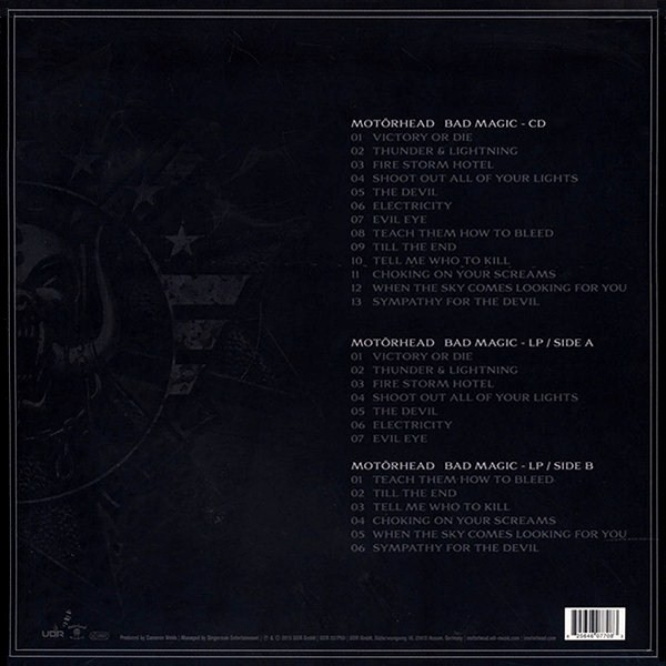 Artista(s) / Grupo: Motörhead | Cantidad de Discos: 1 LP + 1 CD | Lanzamiento: 2015 | Género(s): Rock | Estilo(s): Rock & Roll, Hard Rock, Blues Rock, Heavy Metal | TÃtulo: Bad Magic | Artista(s) / Grupo: Motörhead | Cantidad de Discos: 1 LP + 1 CD | Lanzamiento: 2015 | Género(s): Rock | Estilo(s): Rock & Roll, Hard Rock, Blues Rock, Heavy Metal | TÃtulo: Bad Magic