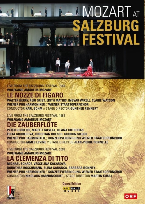Esta caja presenta grabaciones de ópera en circulación desde el Festival de Salzburgo de 1966, 1982 y 2003 con cantantes estrella como Walter Berry, Reri Grist e Ingvar Wixell en «Le Nozze di Figaro», Edita Gruberova, Ileana Cotrubaş y Peter Schreier en «La flauta mágica «La clemenza di Tito» con las estrellas mezzo-soprano Vesselina Kasarova y Elina Garanca.
