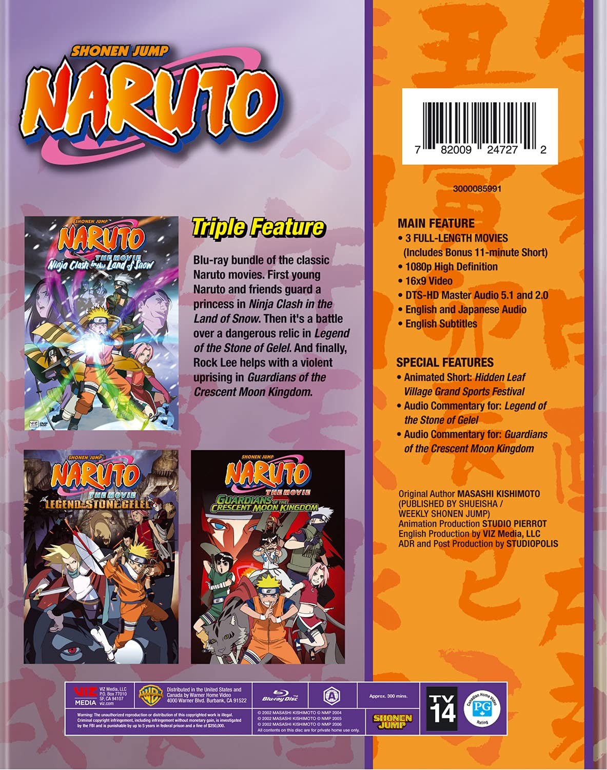 Cantidad de Discos: 1 | Lanzamiento: 2021 | Género(s): Animación | Audio: Inglés | SubtÃtulos: Inglés | TÃtulo: Naruto Triple Feature | Director(es): Tensai Okamura / Hirotsugu Kawasaki / Toshiyuki Tsuru | Reparto: Animation | Norma / Región: NTSC (Región A) | Cantidad de Discos: 1 | Lanzamiento: 2021 | Género(s): Animación | Audio: Inglés | SubtÃtulos: Inglés | TÃtulo: Naruto Triple Feature | Director(es): Tensai Okamura / Hirotsugu Kawasaki / Toshiyuki Tsuru | Reparto: Animation | Norma / Región: NTSC (Región A)