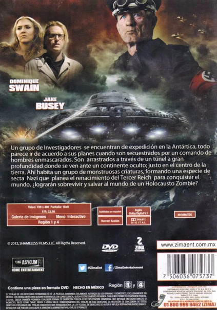 | Norma / Región: NTSC (Región 1, 4) | Cantidad de Discos: 1 | Lanzamiento: 2012 | Género(s): Acción, Terror, Fantástico, Aventura | Audio: Inglés (Dolby Digital 5,1) | SubtÃtulos: Español | TÃtulo: Nazis at the Center of the Earth | Director(es): Joseph Lawson | Reparto: Dominique Swain, Joshua Michael Allen, Christopher Karl Johnson, Jake Busey, James Maxwell Young, Lilan Bowden, Marlene Okner, Adam Burch, Andre Tenerelli