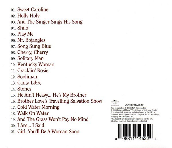 Artista(s) / Grupo: Neil Diamond | Cantidad de Discos: 1 | Lanzamiento: 2006 | Género(s): Pop | Estilo(s): Folk Rock, Pop Rock | Título: The Best Of Neil Diamond | Artista(s) / Grupo: Neil Diamond | Cantidad de Discos: 1 | Lanzamiento: 2006 | Género(s): Pop | Estilo(s): Folk Rock, Pop Rock | Título: The Best Of Neil Diamond