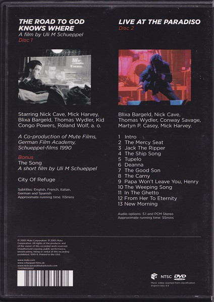 Artista(s) / Grupo: Nick Cave And The Bad Seeds | Cantidad de Discos: 2 | Lanzamiento: 2005 | Género(s): Rock | Estilo(s): Alternative Rock | Título: The Road To God Knows Where / Live At The Paradiso | Artista(s) / Grupo: Nick Cave And The Bad Seeds | Cantidad de Discos: 2 | Lanzamiento: 2005 | Género(s): Rock | Estilo(s): Alternative Rock | Título: The Road To God Knows Where / Live At The Paradiso