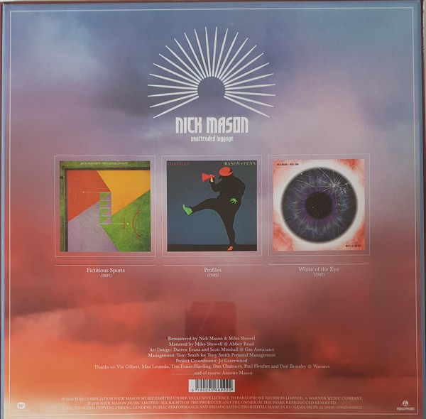 Artista(s) / Grupo: Nick Mason | Cantidad de Discos: 3 LP | Lanzamiento: 2018 | Estilo(s): Jazz, Instrumental | TÃtulo: Unattended Luggage | Artista(s) / Grupo: Nick Mason | Cantidad de Discos: 3 LP | Lanzamiento: 2018 | Estilo(s): Jazz, Instrumental | TÃtulo: Unattended Luggage