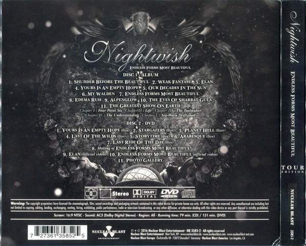 Artista(s) / Grupo: Nightwish ‎ | Cantidad de Discos: 1 DVD + 1 CD | Lanzamiento: 2016 | Género(s): Rock | Estilo(s): Folk Metal, Power Metal, Symphonic Metal | TÃtulo: Endless Forms Most Beautiful | Norma / Región: NTSC 1 | Artista(s) / Grupo: Nightwish ‎ | Cantidad de Discos: 1 DVD + 1 CD | Lanzamiento: 2016 | Género(s): Rock | Estilo(s): Folk Metal, Power Metal, Symphonic Metal | TÃtulo: Endless Forms Most Beautiful | Norma / Región: NTSC 1