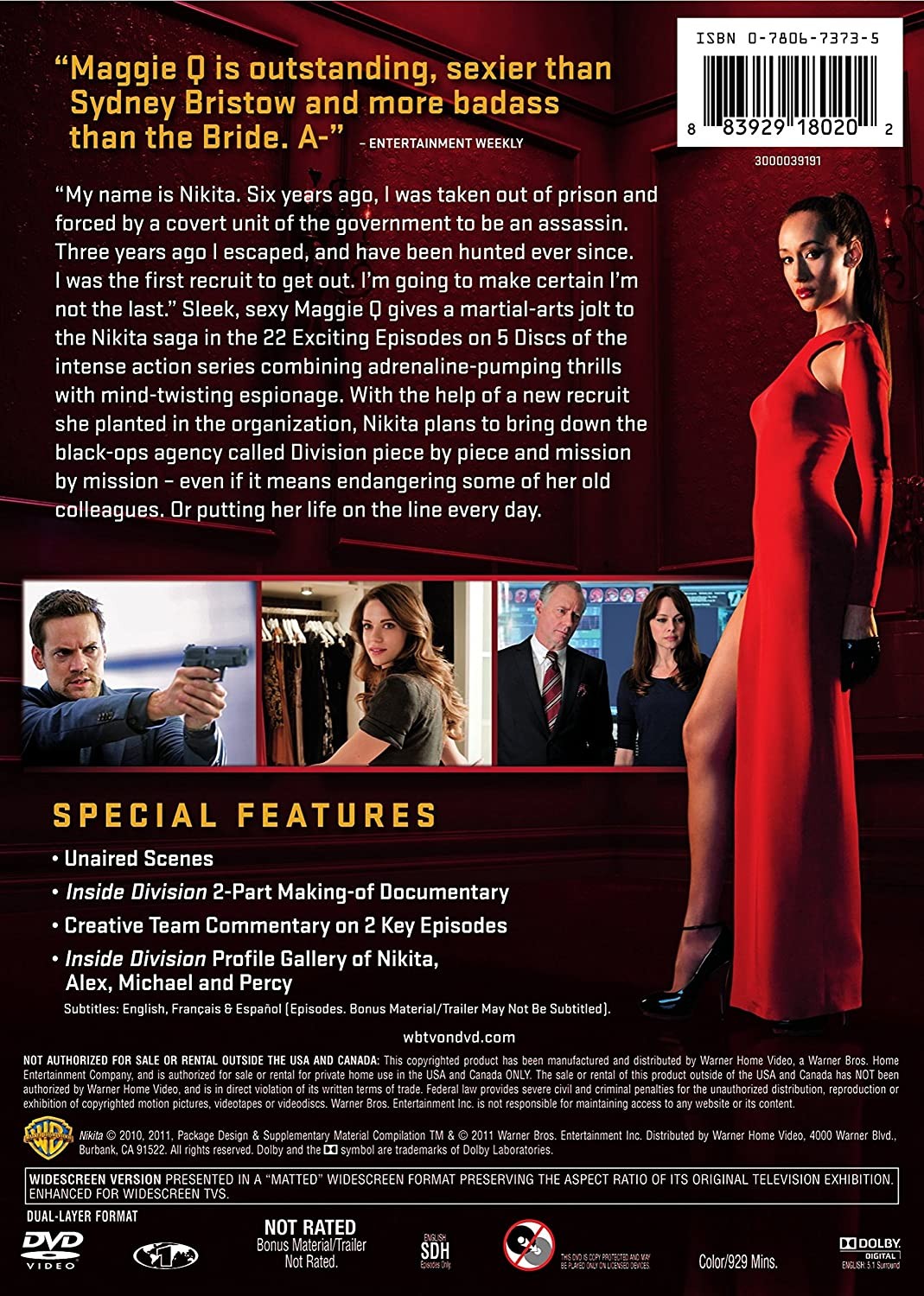 Cantidad de Discos: 5 | Lanzamiento: 2010 | Género(s): Serie de TV, Intriga, Thriller | Audio: Inglés | SubtÃtulos: Inglés, Español, Francés | TÃtulo: Nikita | Director(es): Craig Silverstein (Creador), Eagle Egilsson, Kenneth Fink, David Solomon, Danny Cannon, Nick Copus | Reparto: Maggie Q, Lyndsy Fonseca, Shane West, Aaron Stanford, Melinda Clarke, Devon Sawa, Ashton Holmes, Xander Berkeley, Tiffany Hines, Sebastien Roberts, Ray Park, Neil Davison | Norma / Región: NTSC 1 | Cantidad de Discos: 5 | Lanzamiento: 2010 | Género(s): Serie de TV, Intriga, Thriller | Audio: Inglés | SubtÃtulos: Inglés, Español, Francés | TÃtulo: Nikita | Director(es): Craig Silverstein (Creador), Eagle Egilsson, Kenneth Fink, David Solomon, Danny Cannon, Nick Copus | Reparto: Maggie Q, Lyndsy Fonseca, Shane West, Aaron Stanford, Melinda Clarke, Devon Sawa, Ashton Holmes, Xander Berkeley, Tiffany Hines, Sebastien Roberts, Ray Park, Neil Davison | Norma / Región: NTSC 1