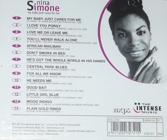 Artista(s) / Grupo: Nina Simone | Cantidad de Discos: 1 | Lanzamiento: 2011 | Género(s): Jazz | Título: My Baby Just Cares For Me | Artista(s) / Grupo: Nina Simone | Cantidad de Discos: 1 | Lanzamiento: 2011 | Género(s): Jazz | Título: My Baby Just Cares For Me | Artista(s) / Grupo: Nina Simone | Cantidad de Discos: 1 | Lanzamiento: 2011 | Género(s): Jazz | Título: My Baby Just Cares For Me