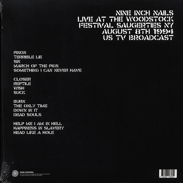 Artista(s) / Grupo: Nine Inch Nails | Cantidad de Discos: 2 LP | Lanzamiento: 2019 | Género(s): Rock | Estilo(s): Industrial | TÃtulo: Mudstock (Live At The Woodstock Festival Saugerties New York 8/13/94 | Norma / Región: NTSC (Región 1, 4) | Artista(s) / Grupo: Nine Inch Nails | Cantidad de Discos: 2 LP | Lanzamiento: 2019 | Género(s): Rock | Estilo(s): Industrial | TÃtulo: Mudstock (Live At The Woodstock Festival Saugerties New York 8/13/94 | Norma / Región: NTSC (Región 1, 4)