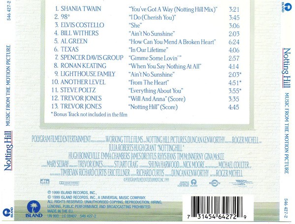 | 13 | Trevor Jones– | Notting Hill (Score) | 4:45 |