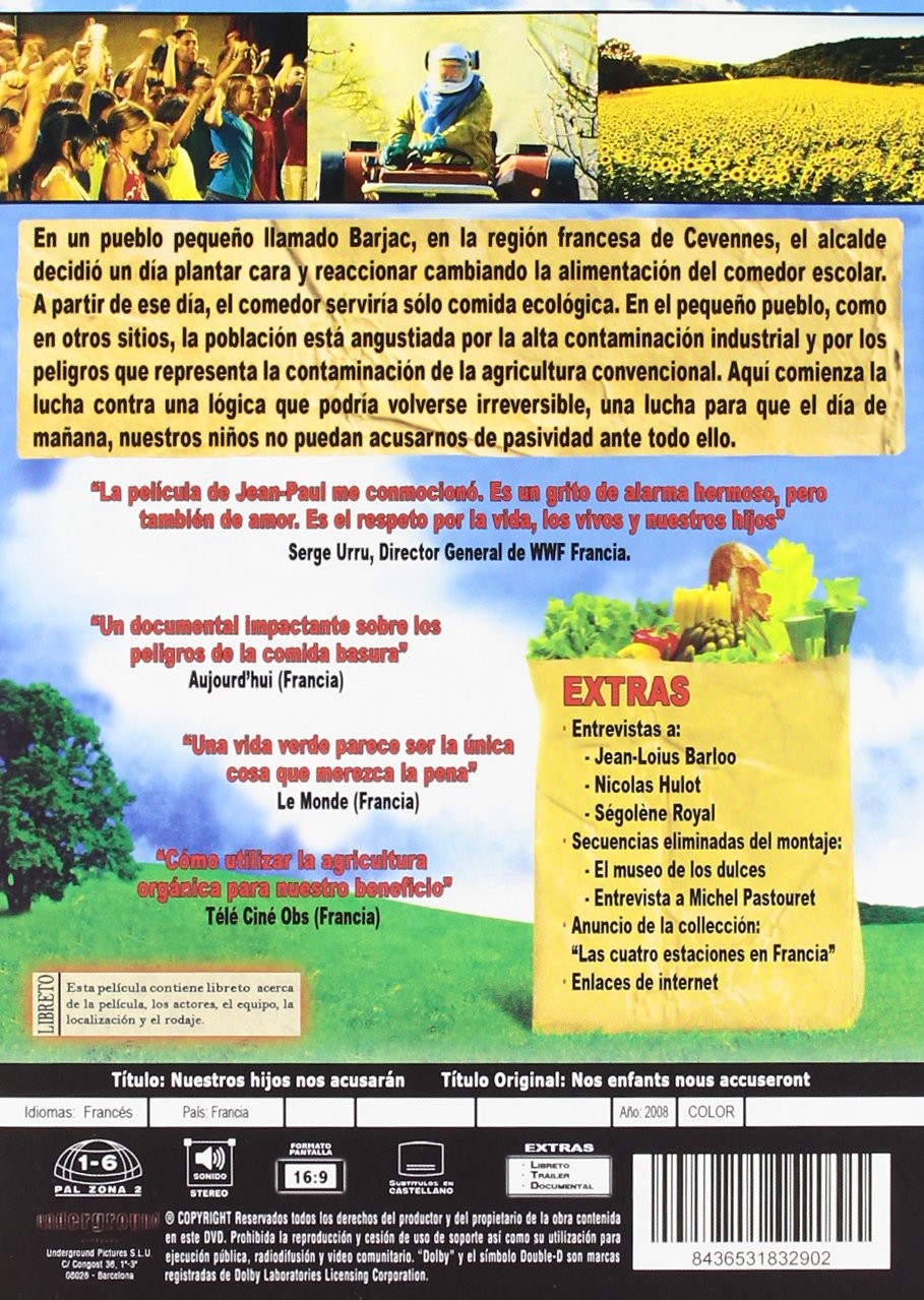 El documental relata la valiente iniciativa del pequeño municipio de Barjac, en la región del Gard, al sur de Francia, iniciativa de introducir la alimentación biológica en los comedores escolares. El director nos describe, sin concesión alguna, la tragedia medioambiental que amenaza a las jóvenes generaciones: envenenamiento de nuestras tierras agrícolas con los fertilizantes químicos (76 000 toneladas anuales de plaguicidas) y grave deterioro para la salud. Su consigna es clara e inequívoca: No basta con denunciar los estragos, hay que poner remedio inmediatamente para que nuestros hijos no nos acusen el día de mañana.