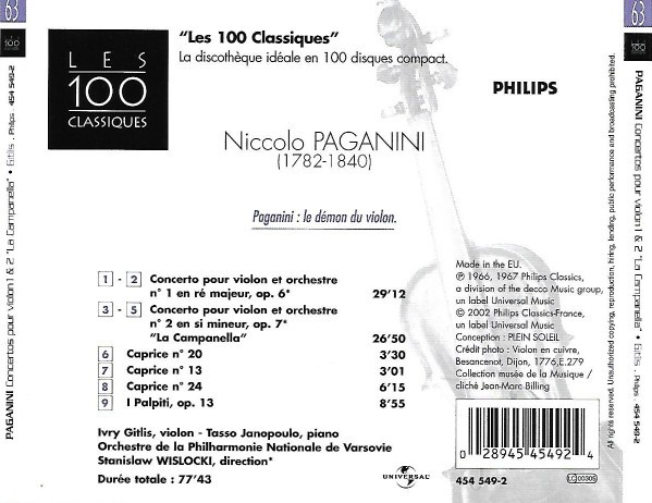 TÃtulo: Concertos Pour Violon N°1 Et N°2 «La Campanella»