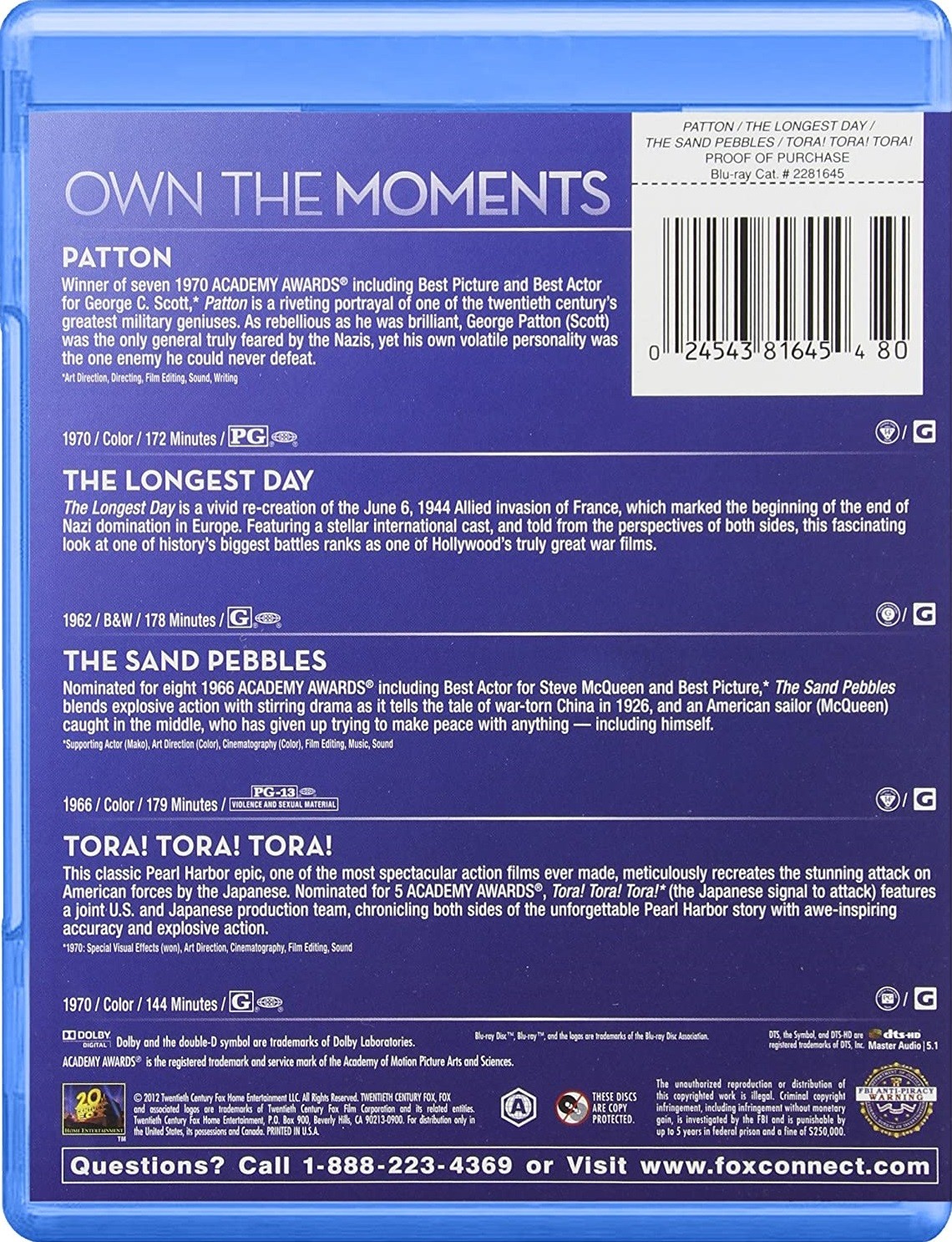 PATTON / THE LONGEST DAY / THE SAND PEBBLES / TORA ! TORA ! TORA !