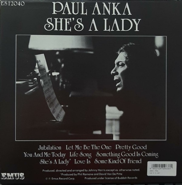 | TÃtulo: She’s A Lady | Artista(s) / Grupo: Paul Anka | Cantidad de Discos: 1 LP | Lanzamiento: 2017 | Género(s): Jazz | Estilo(s): Crooner