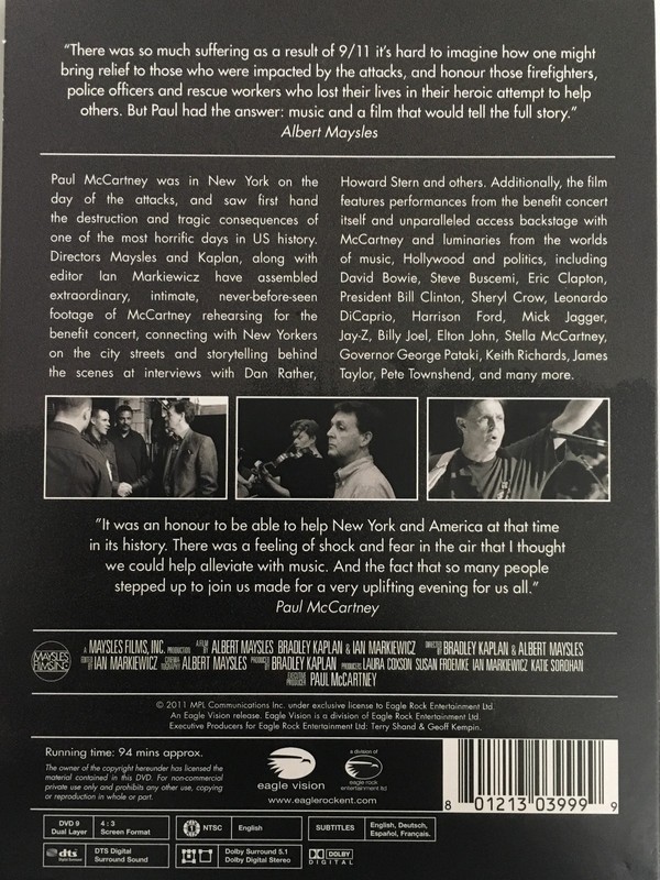 Artista(s) / Grupo: Paul McCartney | Cantidad de Discos: 1 | Lanzamiento: 2011 | Género(s): Rock | Audio: Inglés | Título: The Love We Make | Norma / Región: NTSC (Región 1, 4) | Artista(s) / Grupo: Paul McCartney | Cantidad de Discos: 1 | Lanzamiento: 2011 | Género(s): Rock | Audio: Inglés | Título: The Love We Make | Norma / Región: NTSC (Región 1, 4)