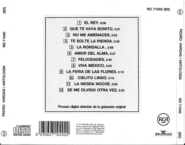 Artista(s) / Grupo: Pedro Vargas | Cantidad de Discos: 1 | Género(s): Latin, Pop | Título: Antologia | Artista(s) / Grupo: Pedro Vargas | Cantidad de Discos: 1 | Género(s): Latin, Pop | Título: Antologia
