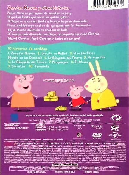 Aventuras animadas de Peppa Pig. Presenta diez episodios: 'Zapatos nuevos', 'Lección de ballet', 'Búsqueda del tesoro', 'No muy bien', 'Castillo ventoso', 'Panqueques', 'El museo', 'Secretos' y 'Tormenta eléctrica'.