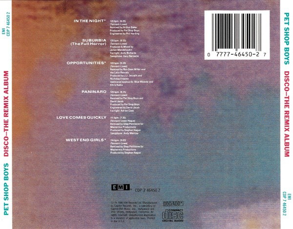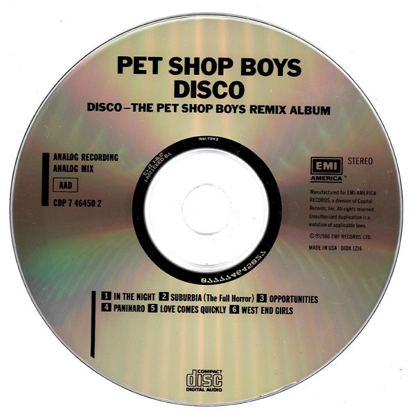 Artista(s) / Grupo: Pet Shop Boys | Cantidad de Discos: 1 | Lanzamiento: 1986 | Género(s): Electronic, Pop | Estilo(s): Synth-pop | TÃtulo: Disco | Artista(s) / Grupo: Pet Shop Boys | Cantidad de Discos: 1 | Lanzamiento: 1986 | Género(s): Electronic, Pop | Estilo(s): Synth-pop | TÃtulo: Disco | Artista(s) / Grupo: Pet Shop Boys | Cantidad de Discos: 1 | Lanzamiento: 1986 | Género(s): Electronic, Pop | Estilo(s): Synth-pop | TÃtulo: Disco