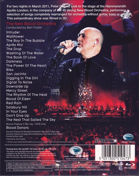 Artista(s) / Grupo: Peter Gabriel | Cantidad de Discos: 1 3D + 1 BluRay + 1 DVD | Lanzamiento: 2011 | Género(s): Rock | Estilo(s): Rock, Classical Modern, Classic Rock, Symphonic Rock | TÃtulo: New Blood – Live In London | Norma / Región: NTSC (Región 1, 4) | Artista(s) / Grupo: Peter Gabriel | Cantidad de Discos: 1 3D + 1 BluRay + 1 DVD | Lanzamiento: 2011 | Género(s): Rock | Estilo(s): Rock, Classical Modern, Classic Rock, Symphonic Rock | TÃtulo: New Blood – Live In London | Norma / Región: NTSC (Región 1, 4) | Artista(s) / Grupo: Peter Gabriel | Cantidad de Discos: 1 3D + 1 BluRay + 1 DVD | Lanzamiento: 2011 | Género(s): Rock | Estilo(s): Rock, Classical Modern, Classic Rock, Symphonic Rock | TÃtulo: New Blood – Live In London | Norma / Región: NTSC (Región 1, 4)