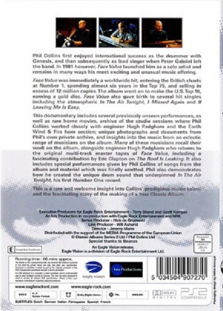 Artista(s) / Grupo: Phil Collins | Cantidad de Discos: 1 | Lanzamiento: 2004 | Género(s): Rock | Estilo(s): Rock | TÃtulo: Face Value | Norma / Región: Multizona | Artista(s) / Grupo: Phil Collins | Cantidad de Discos: 1 | Lanzamiento: 2004 | Género(s): Rock | Estilo(s): Rock | TÃtulo: Face Value | Norma / Región: Multizona