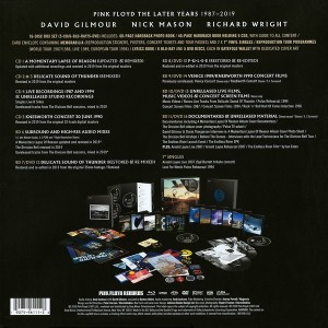 Artista(s) / Grupo: Pink Floyd | Cantidad de Discos: 2 LP 7″ + 6 BluRay + 5 DVD + 5 CD + Libro + Fotos | Lanzamiento: 2019 | Género(s): Rock | Estilo(s): Arena Rock, Classic Rock, AOR, Prog Rock | TÃtulo: The Later Years 1987-2019 | Artista(s) / Grupo: Pink Floyd | Cantidad de Discos: 2 LP 7″ + 6 BluRay + 5 DVD + 5 CD + Libro + Fotos | Lanzamiento: 2019 | Género(s): Rock | Estilo(s): Arena Rock, Classic Rock, AOR, Prog Rock | TÃtulo: The Later Years 1987-2019
