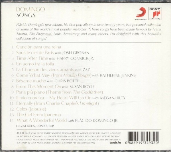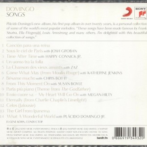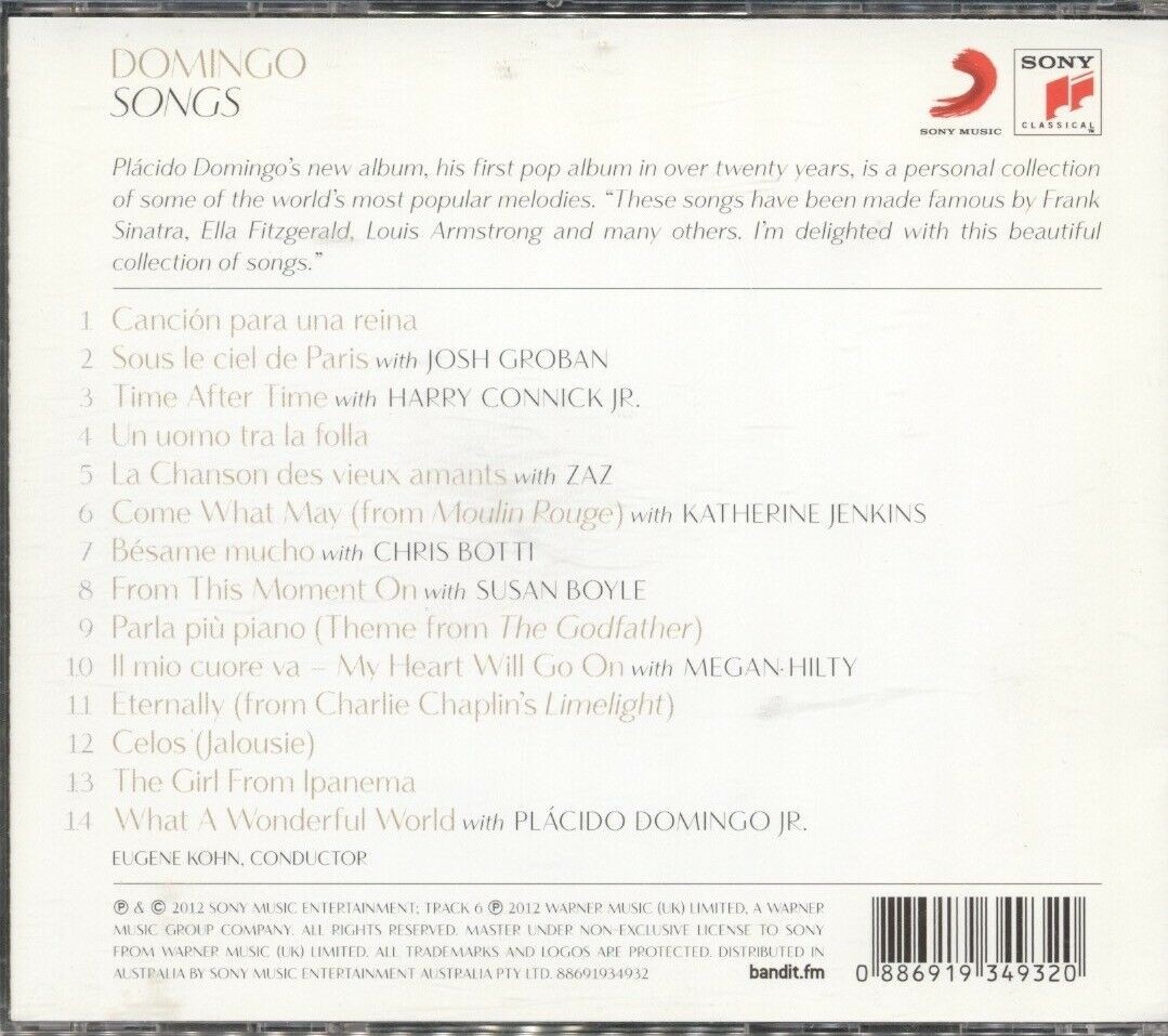Artista(s) / Grupo: PLACIDO DOMINGO | Cantidad de Discos: 1 CD | Lanzamiento: 2012 | Género(s): OPERA | TÃtulo: SONGS | Artista(s) / Grupo: PLACIDO DOMINGO | Cantidad de Discos: 1 CD | Lanzamiento: 2012 | Género(s): OPERA | TÃtulo: SONGS