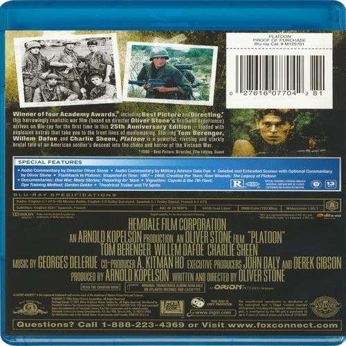 Reparto: Charlie Sheen, Tom Berenger, Willem Dafoe, Kevin Dillon, Forest Whitaker, Johnny Depp, John C. McGinley, Francesco Quinn, Richard Edson, Reggie Johnson, Keith David, David Neidorf, Mark Moses, Chris Pedersen, Tony Todd, Dale Dye