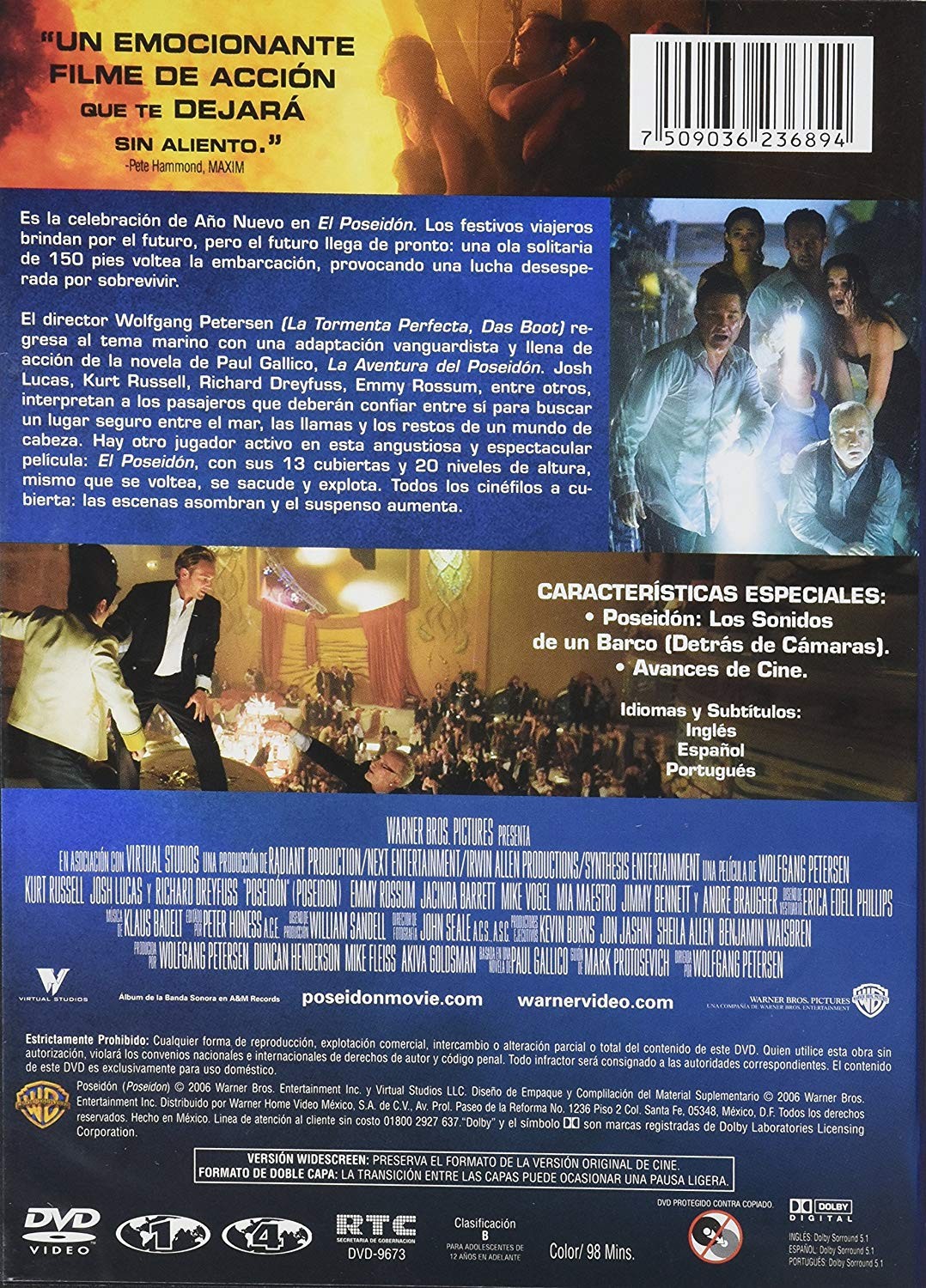 Cantidad de Discos: 1 | Lanzamiento: 2006 | Género(s): Drama, Suspenso | Audio: Español, Inglés | Subtítulos: Español, Inglés | Director(es): Wolfgang Petersen | Reparto: Josh Lucas, Kurt Russell, Emmy Rossum, Jacinda Barrett, Richard Dreyfuss, Mía Maestro, Kevin Dillon, Mike Vogel, Jimmy Bennett, Andre Braugher, Freddy Rodríguez, Stacy Ferguson | Sub-Categorías: Acción | Norma / Región: NTSC (Región 1, 4) | Cantidad de Discos: 1 | Lanzamiento: 2006 | Género(s): Drama, Suspenso | Audio: Español, Inglés | Subtítulos: Español, Inglés | Director(es): Wolfgang Petersen | Reparto: Josh Lucas, Kurt Russell, Emmy Rossum, Jacinda Barrett, Richard Dreyfuss, Mía Maestro, Kevin Dillon, Mike Vogel, Jimmy Bennett, Andre Braugher, Freddy Rodríguez, Stacy Ferguson | Sub-Categorías: Acción | Norma / Región: NTSC (Región 1, 4)