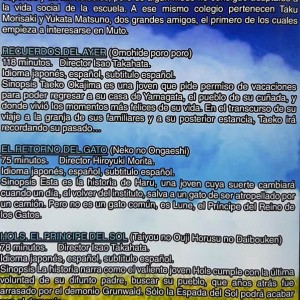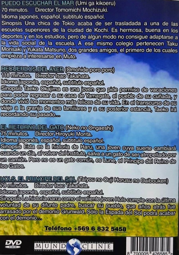 Título: Umi ga kikoeruaka (1993) / Omohide Poro Poro (1991) / Haru en el reino de los gatos o Neko no ongaeshiaka (2002) / Taiyô no Ôji Horusu no Daibôken o The Great Adventure of Horus, Prince of the Sun (1968)