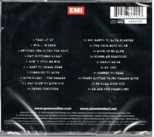 Artista(s) / Grupo: Queen + Adam Lambert | Cantidad de Discos: 1 | Lanzamiento: 2020 | Género(s): Rock | Estilo(s): Arena Rock | TÃtulo: Live Around The World | Artista(s) / Grupo: Queen + Adam Lambert | Cantidad de Discos: 1 | Lanzamiento: 2020 | Género(s): Rock | Estilo(s): Arena Rock | TÃtulo: Live Around The World | Artista(s) / Grupo: Queen + Adam Lambert | Cantidad de Discos: 1 | Lanzamiento: 2020 | Género(s): Rock | Estilo(s): Arena Rock | TÃtulo: Live Around The World