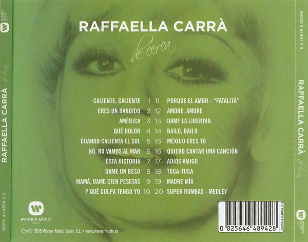 Artista(s) / Grupo: Raffaella Carrà | Cantidad de Discos: 1 | Lanzamiento: 2015 | Género(s): Pop | Estilo(s): Ballad, Europop, Vocal, Rumba | Título: De Cerca | Artista(s) / Grupo: Raffaella Carrà | Cantidad de Discos: 1 | Lanzamiento: 2015 | Género(s): Pop | Estilo(s): Ballad, Europop, Vocal, Rumba | Título: De Cerca