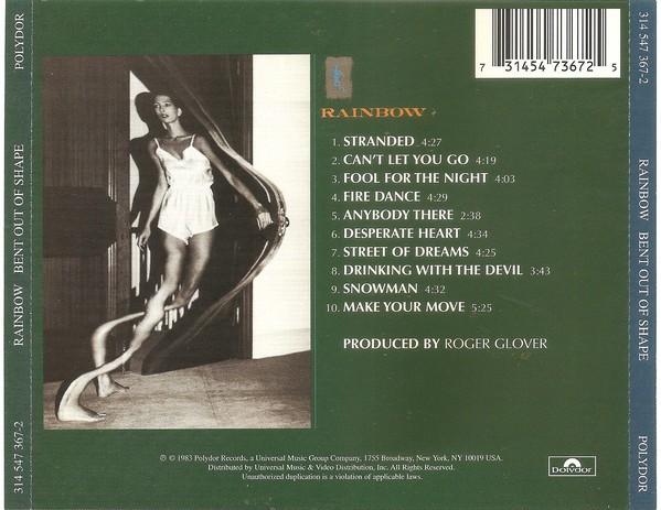 Artista(s) / Grupo: Rainbow | Cantidad de Discos: 1 | Lanzamiento: 1999 | Género(s): Rock | Estilo(s): Hard Rock | TÃtulo: Bent Out Of Shape | Artista(s) / Grupo: Rainbow | Cantidad de Discos: 1 | Lanzamiento: 1999 | Género(s): Rock | Estilo(s): Hard Rock | TÃtulo: Bent Out Of Shape