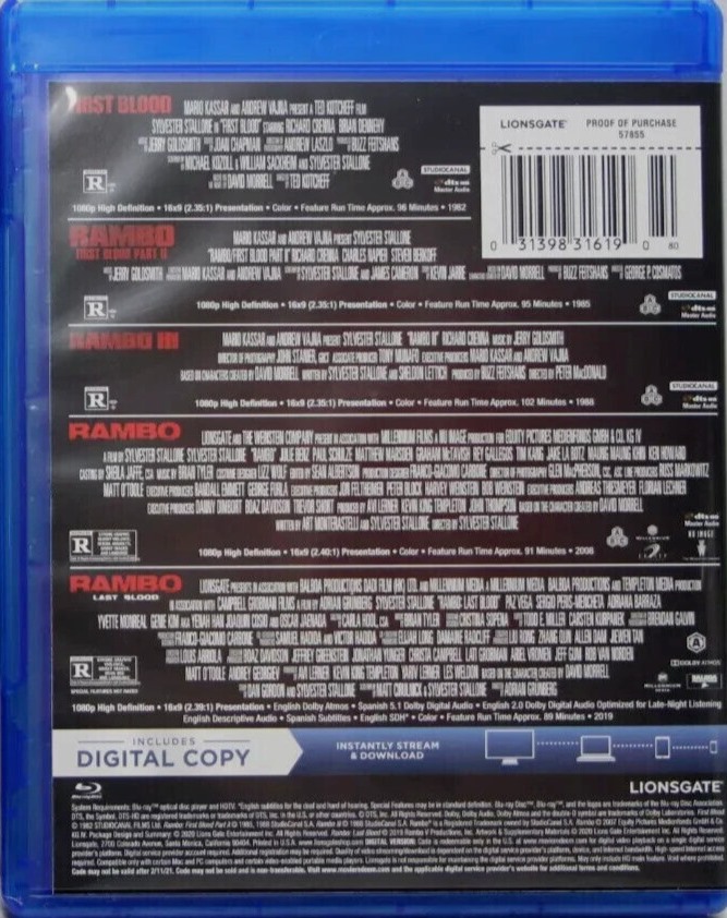 TÃtulo: Rambo: First Blood (1982) / Rambo II (1985) / Rambo III (1988) / Rambo (2008) / Rambo: Last Blood (2019)