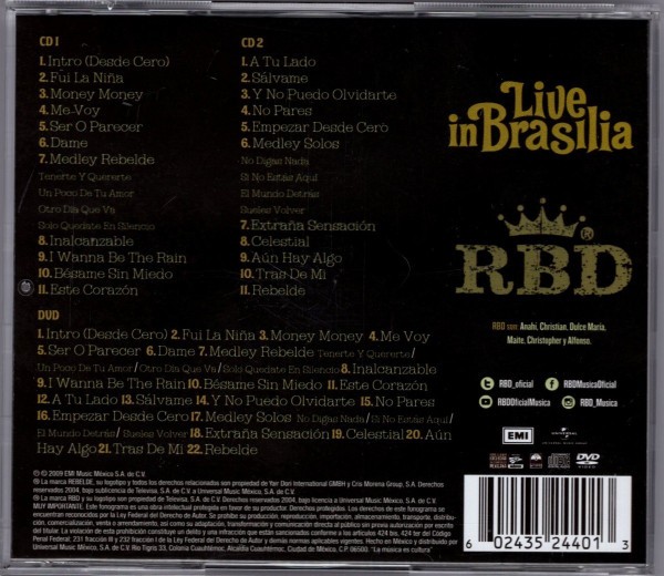 | 07 | Medley Rebelde: (Tenerte y Quererte / Un Poco De Tu Amor / Otro DÃa Que Va / Solo Quédate En Silencio) | 6:20 | |