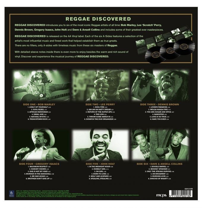 Artista(s) / Grupo: Bob Marley – Lee Scratch Perry – Dennis Brown – Gregory Isaacs – John Holt – Dave & Ansell Collins | Cantidad de Discos: 3 | Lanzamiento: 2016 | Estilo(s): Reggae | TÃtulo: Reggae Discovered – 6 Artists | Artista(s) / Grupo: Bob Marley – Lee Scratch Perry – Dennis Brown – Gregory Isaacs – John Holt – Dave & Ansell Collins | Cantidad de Discos: 3 | Lanzamiento: 2016 | Estilo(s): Reggae | TÃtulo: Reggae Discovered – 6 Artists