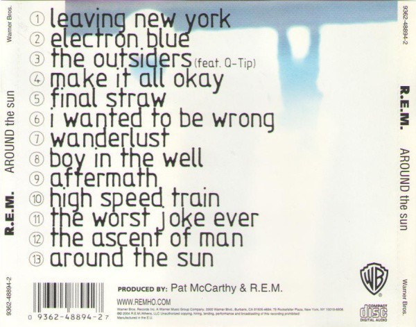 Artista(s) / Grupo: R.E.M. | Cantidad de Discos: 1 CD Digipack | Lanzamiento: 2004 | Género(s): Rock | Estilo(s): Alternative Rock, Pop Rock | TÃtulo: Around The Sun | Artista(s) / Grupo: R.E.M. | Cantidad de Discos: 1 CD Digipack | Lanzamiento: 2004 | Género(s): Rock | Estilo(s): Alternative Rock, Pop Rock | TÃtulo: Around The Sun