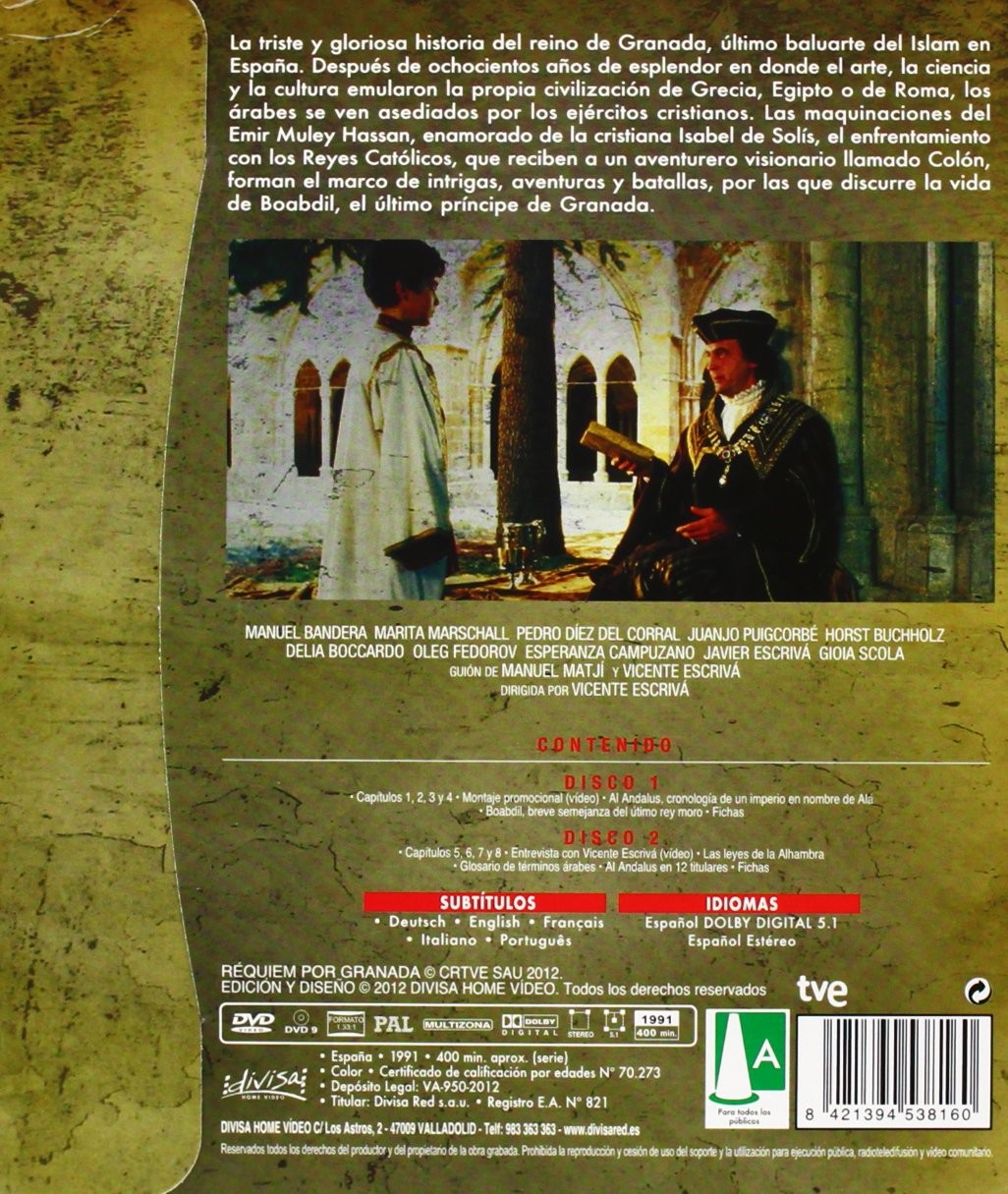 Cantidad de Discos: 2 | Lanzamiento: 2006 | Género(s): Serie de TV, Drama, Bélico | Audio: Español (Dolby Digital 5,1) | SubtÃtulos: Alemán, Francés, Inglés, Italiano, Portugués | TÃtulo: Réquiem por Granada | Director(es): Vicente Escrivá | Reparto: Manuel Bandera