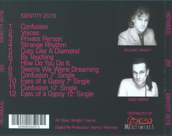 Artista(s) / Grupo: Richard Wright & Dave Harris | Cantidad de Discos: 1 | Lanzamiento: 2019 | Género(s): Electronic, Rock | Estilo(s): New Wave, Electro, Prog Rock | Título: Zee Identity 2019 | Norma / Región: NTSC (Región 1, 4) | Artista(s) / Grupo: Richard Wright & Dave Harris | Cantidad de Discos: 1 | Lanzamiento: 2019 | Género(s): Electronic, Rock | Estilo(s): New Wave, Electro, Prog Rock | Título: Zee Identity 2019 | Norma / Región: NTSC (Región 1, 4) | Artista(s) / Grupo: Richard Wright & Dave Harris | Cantidad de Discos: 1 | Lanzamiento: 2019 | Género(s): Electronic, Rock | Estilo(s): New Wave, Electro, Prog Rock | Título: Zee Identity 2019 | Norma / Región: NTSC (Región 1, 4)