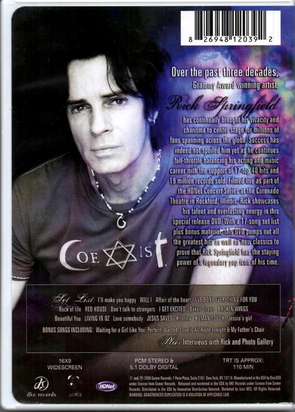Artista(s) / Grupo: Rick Springfield | Cantidad de Discos: 1 | Lanzamiento: 2006 | Género(s): Rock | Estilo(s): Pop Rock | Audio: Inglés | Título: Live In Rockford | Norma / Región: mULTIZONA | Artista(s) / Grupo: Rick Springfield | Cantidad de Discos: 1 | Lanzamiento: 2006 | Género(s): Rock | Estilo(s): Pop Rock | Audio: Inglés | Título: Live In Rockford | Norma / Región: mULTIZONA