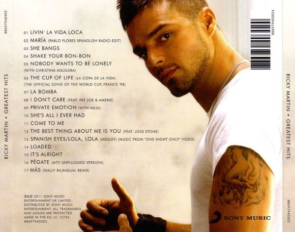 Artista(s) / Grupo: Ricky Martin | Cantidad de Discos: 1 | Lanzamiento: 2011 | Género(s): Latin, Pop | Estilo(s): Latin, Ballad | TÃtulo: Greatest Hits | Artista(s) / Grupo: Ricky Martin | Cantidad de Discos: 1 | Lanzamiento: 2011 | Género(s): Latin, Pop | Estilo(s): Latin, Ballad | TÃtulo: Greatest Hits