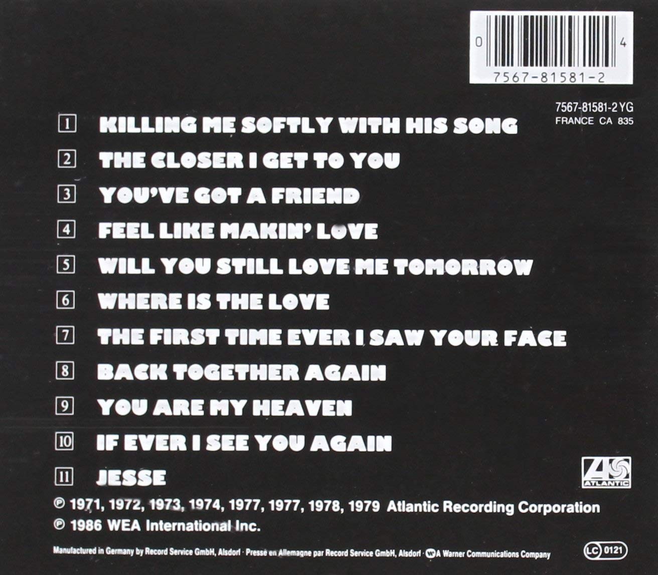 Artista(s) / Grupo: Roberta Flack | Cantidad de Discos: 1 | Lanzamiento: 1990 | Género(s): Jazz, Funk / Soul | Título: The Best of | Artista(s) / Grupo: Roberta Flack | Cantidad de Discos: 1 | Lanzamiento: 1990 | Género(s): Jazz, Funk / Soul | Título: The Best of