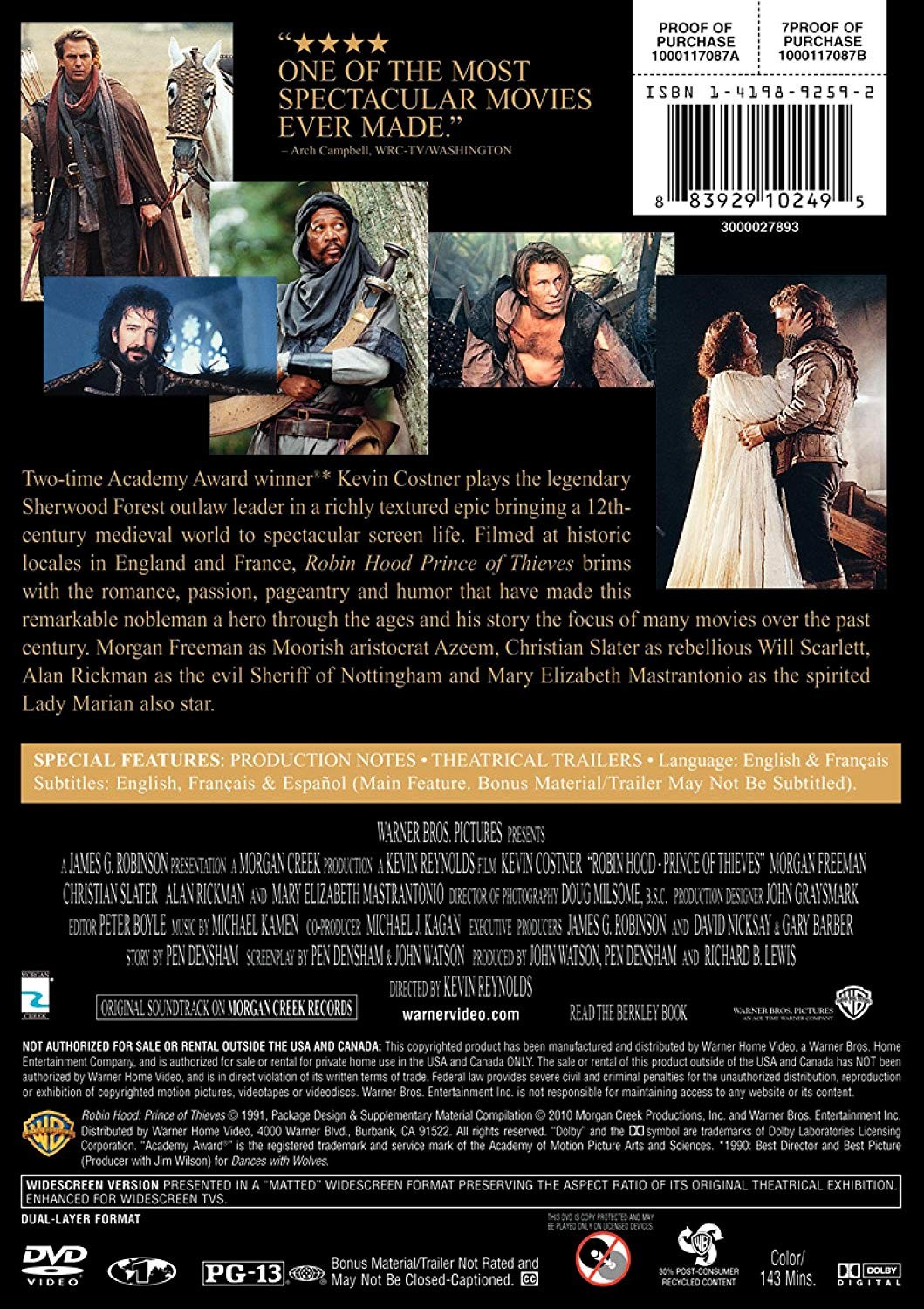 Cantidad de Discos: 1 | Lanzamiento: 2014 | Género(s): Aventura, Romance, Suspenso | Audio: Español, Inglés, Francés | SubtÃtulos: Español, Inglés, Francés | TÃtulo: Robin Hood, prÃncipe de los ladrones (1991) | Director(es): Kevin Reynolds | Reparto: Kevin Costner, Mary Elizabeth Mastrantonio, Morgan Freeman, Alan Rickman, Christian Slater, Michael Wincott, Nick Brimble, Geraldine McEwan, Michael McShane, Walter Sparrow, Imogen Bain, Brian Blessed, Harold Innocent, Liam Halligan, Sean Connery | Norma / Región: NTSC 1 | Cantidad de Discos: 1 | Lanzamiento: 2014 | Género(s): Aventura, Romance, Suspenso | Audio: Español, Inglés, Francés | SubtÃtulos: Español, Inglés, Francés | TÃtulo: Robin Hood, prÃncipe de los ladrones (1991) | Director(es): Kevin Reynolds | Reparto: Kevin Costner, Mary Elizabeth Mastrantonio, Morgan Freeman, Alan Rickman, Christian Slater, Michael Wincott, Nick Brimble, Geraldine McEwan, Michael McShane, Walter Sparrow, Imogen Bain, Brian Blessed, Harold Innocent, Liam H