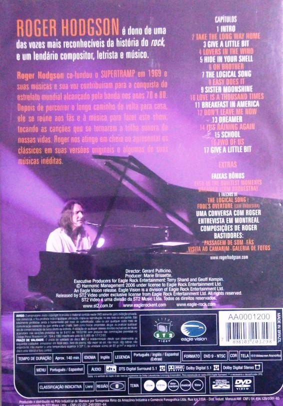 Artista(s) / Grupo: Roger Hodgson | Cantidad de Discos: 1 | Lanzamiento: 2006 | Género(s): Rock | Estilo(s): Art Rock, Pop Rock | Audio: Inglés (Dolby Digital 5,1) | TÃtulo: Take The Long Way Home – Live In Montreal | Norma / Región: Multizona | Artista(s) / Grupo: Roger Hodgson | Cantidad de Discos: 1 | Lanzamiento: 2006 | Género(s): Rock | Estilo(s): Art Rock, Pop Rock | Audio: Inglés (Dolby Digital 5,1) | TÃtulo: Take The Long Way Home – Live In Montreal | Norma / Región: Multizona