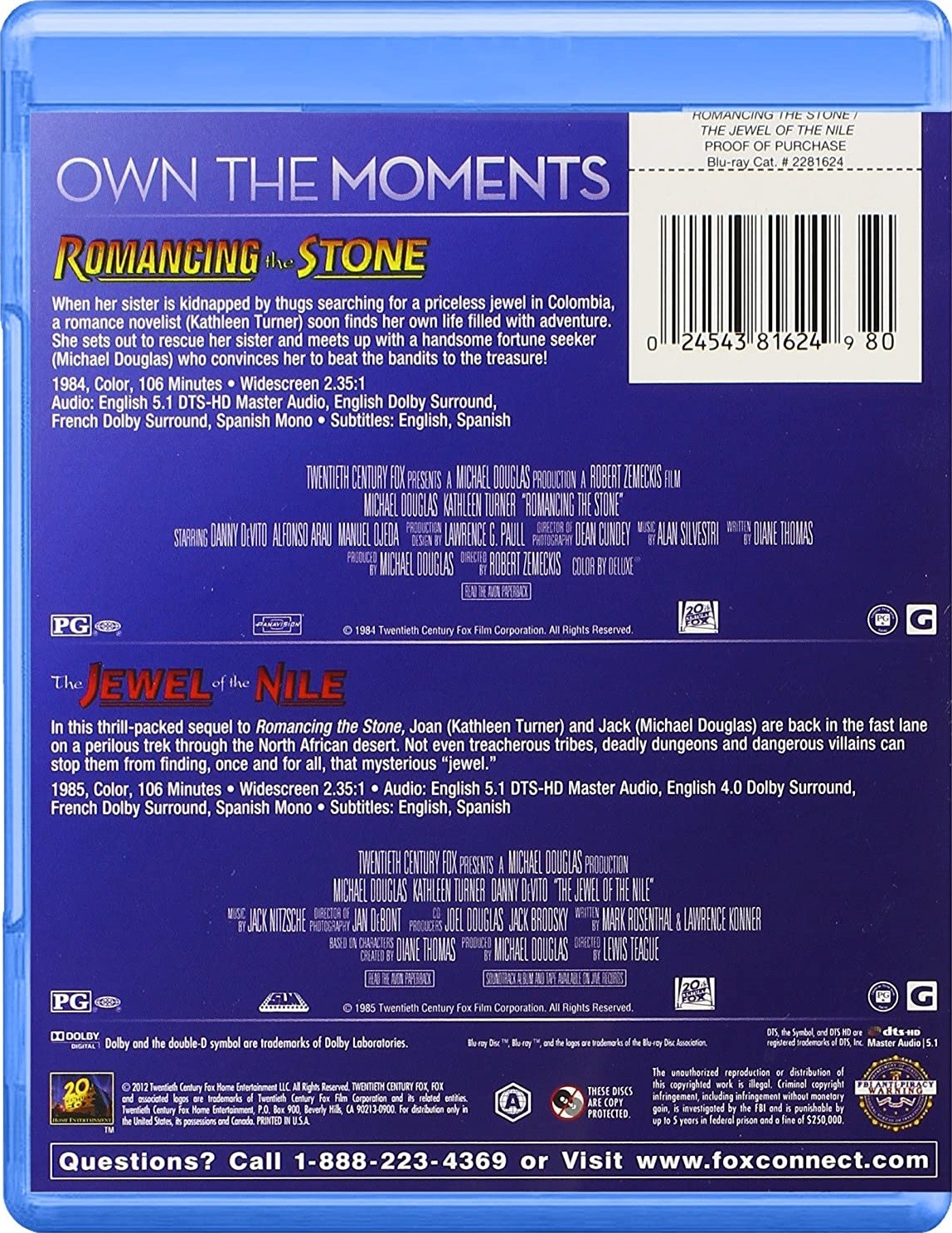 Cantidad de Discos: 1 | Lanzamiento: 2012 | Género(s): Aventuras. Romance. Comedia. | Audio: Español, Inglés, Francés | Subtítulos: Español, Inglés, Francés | Título: Romancing The Stone (1984) / The Jewel Of The Nile (1985) | Director(es): Robert Zemeckis / Lewis Teague | Reparto: Michael Douglas, Kathleen Turner, Danny DeVito, Alfonso Arau, Zack Norman, Eve Smith, Manuel Ojeda, Holland Taylor, Evita Muñoz ‘Chachita’, Mary Ellen Trainor. /