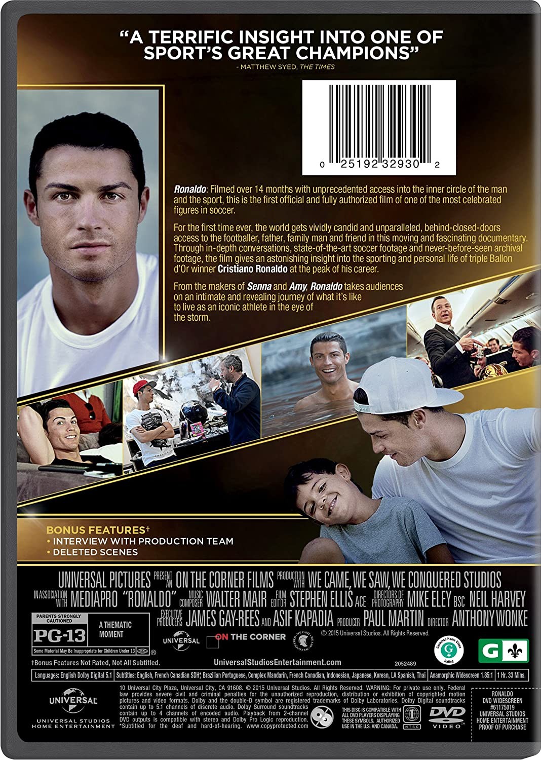 Cantidad de Discos: 1 | Lanzamiento: 2015 | Género(s): Documental | Audio: Inglés | SubtÃtulos: Español, Inglés, Francés | TÃtulo: Ronaldo | Director(es): Anthony Wonke | Norma / Región: NTSC 1 | Cantidad de Discos: 1 | Lanzamiento: 2015 | Género(s): Documental | Audio: Inglés | SubtÃtulos: Español, Inglés, Francés | TÃtulo: Ronaldo | Director(es): Anthony Wonke | Norma / Región: NTSC 1