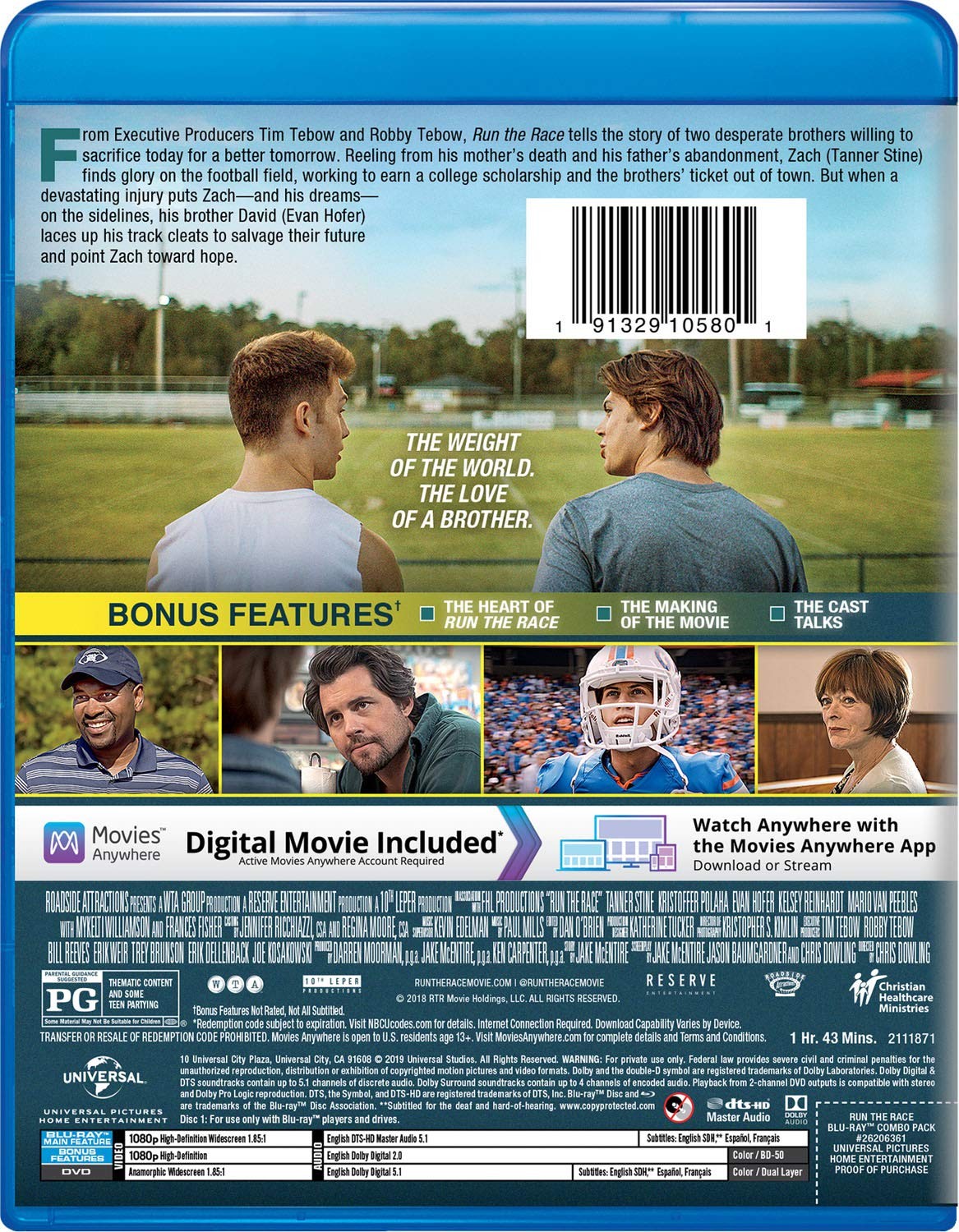 Cantidad de Discos: 1 BluRay + 1 DVD | Lanzamiento: 2019 | Género(s): Drama | Audio: Inglés (Dolby Digital 5,1) | SubtÃtulos: Español, Franco-canadiense, Inglés para las personas con problemas auditivos | TÃtulo: Run the race | Director(es): Chris Dowling | Reparto: Mykelti Williamson, Frances Fisher, Kristoffer Polaha, Tanner Stine, Evan Hofer, Kelsey Reinhardt, Mario Van Peebles, Caleb Castille, Eddie George, Tim Tebow, Jake McEntire, Gianna Simone, Rob Moran, Rebecca Lines, Darrell Foster, Jaci Velasquez, Caleb Emery, Neva Howell, Kevin Wayne, Brandi Lewis, Ken Carpenter, Harrison Stone, London Curtis | Norma / Región: NTSC A/1 | Cantidad de Discos: 1 BluRay + 1 DVD | Lanzamiento: 2019 | Género(s): Drama | Audio: Inglés (Dolby Digital 5,1) | SubtÃtulos: Español, Franco-canadiense, Inglés para las personas con problemas auditivos | TÃtulo: Run the race | Director(es): Chris Dowling | Reparto: Mykelti Williamson, Frances Fisher, Kristoffer Polaha, Tanner Stine, Evan Hofer